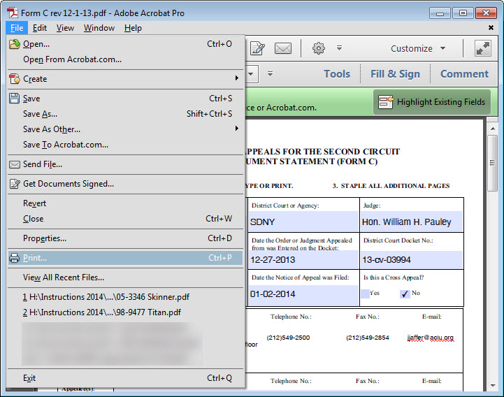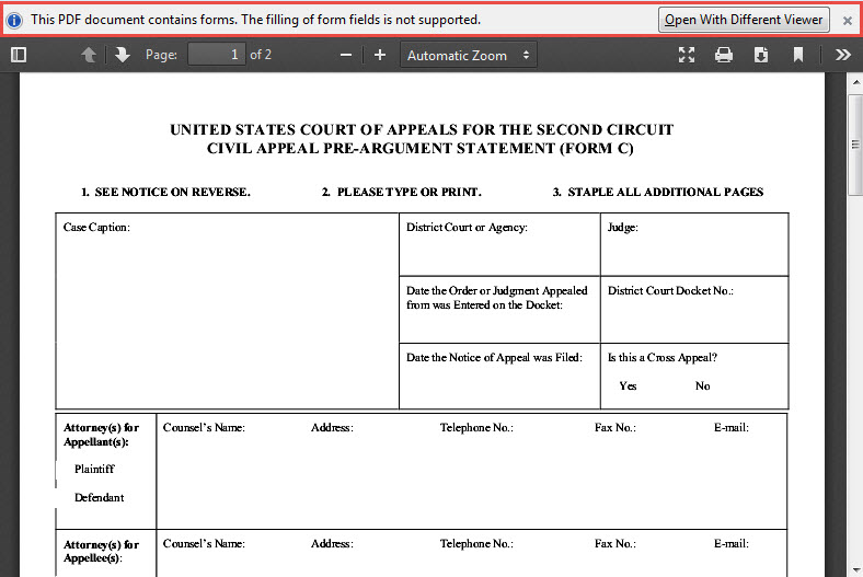 1. Open the fillable form (Second Circuit and FRAP fillable forms are here,