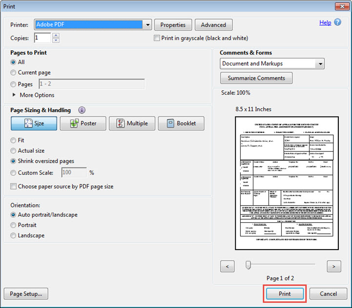 Follow these steps to flatten a PDF before uploading the document to NextGen CM/ECF.