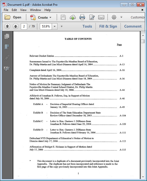 9. If the appendix has been divided into several PDFs for filing purposes, pagination must continue from one file to the next. A table of contents in the additional PDFs is unnecessary. Follow the instructions above to start each subsequent PDF with the next sequential page number of the appendix.