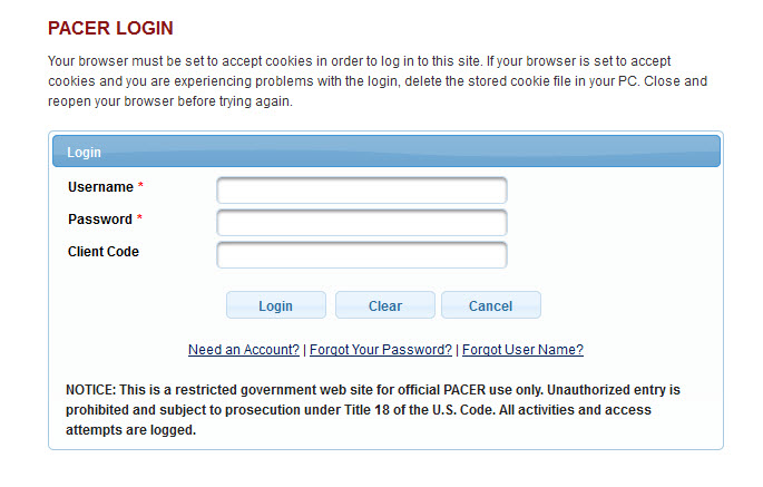 The PACER Login screen opens. Log in with the new, upgraded PACER username and password.