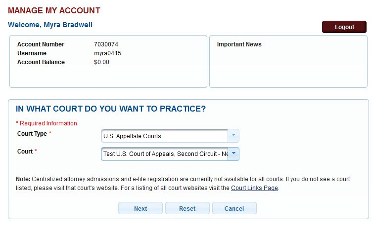 Attorney Admissions/E-file Registration.